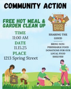 Join Us for a Community Garden Cleanup and Food Drive on Saturday, November 15, at 11 a.m.